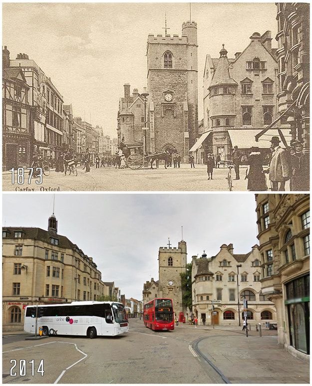 In many places, you can still stand on the same corner shown in a Victorian or 1950s photograph and recognise the outlines of buildings, even if the signs and uses have changed completely. Comparing those views shows: